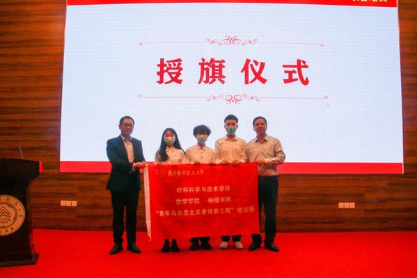 材料科学与技术学院党委书记石勇、物理学院党委书记陈修文共同为“青年马克思主义者培养工程”培训班授旗。