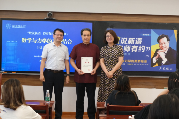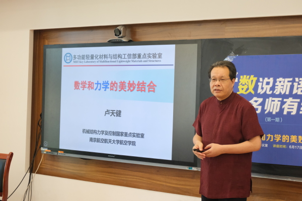 6月17日,BB贝博艾弗森官网在理学楼519会议室举办第一期“数说新语,名师有约”讲座交流活动。国家级人才、多功能轻量化材料与结构研究中心主任、航空学院教授卢天健做了题为《数学和力学的美妙结合》的专题讲座。BB贝博艾弗森官网党委书记许静、院长王春武、院党委副书记周佼佼、辅导员以及BB贝博艾弗森官网、物理学院约40名同学参加活动。活动由周佼佼主持。