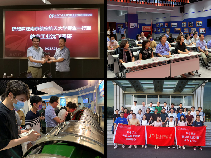 为深入贯彻党中央、国务院及江苏省委、省政府关于高校毕业生就业工作的决策部署,落实学校访企拓岗促就业专项行动要求,推动校企合作、深入了解国防企业人才需求,促进毕业生投身国防就业主战场,7月25日至26日,BB贝博艾弗森官网党委书记许静、院长王春武带队赴辽宁沈阳开展“国防企业面对面”活动,先后走进航空工业沈阳飞机工业(集团)有限公司、航空工业沈阳飞机设计研究所、中国航发沈阳黎明航空发动机有限责任公司、中国航发沈阳发动机研究所。学院党委副书记周佼佼、副院长蒋建林、校就业创业指导服务中心就业管理部主管张月铭、系主任、教务员、辅导员代表以及来自全校6个学院的15名本硕博同学共同参加了走访。