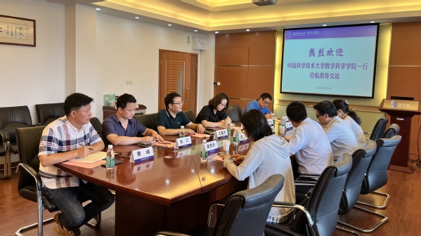 8月17日,中国科学技术大学数学科学学院党委书记、执行院长黄文、副院长王毅、党委副书记王莉、研究生教学部主任黄稚新到我校BB贝博艾弗森官网进行工作交流座谈。BB贝博艾弗森官网党委书记许静、院长王春武、党委副书记周佼佼、副院长徐江、副院长蒋建林、数学系主任曹峰热情接待来访嘉宾并参加座谈交流。