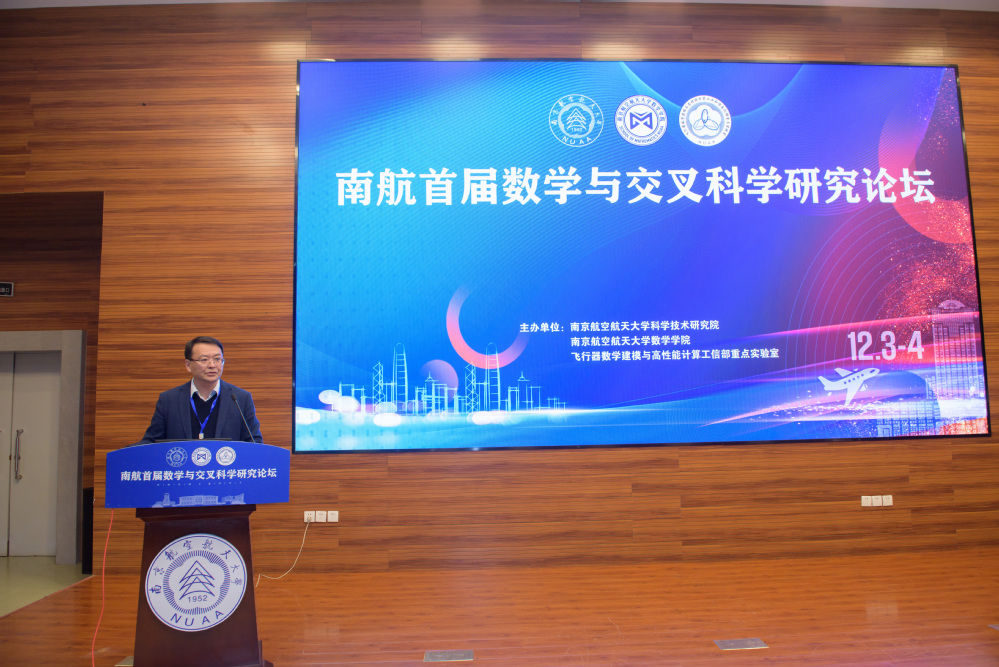 12月3日至4日,BB贝博艾弗森官网联合校科学技术研究院、飞行器数学建模与高性能计算工信部重点实验室在将军路校区一号楼四楼报告厅成功举办了“南航首届数学与交叉科学研究论坛”。校党委常委、副校长姜斌,飞行器数学建模与高性能计算工信部重点实验室主任徐超江,BB贝博艾弗森官网全体院班子及来自各理工科学院的百余名师生参加论坛。论坛特别邀请到航空学院赵宁、招启军、王立峰、朱春玲、文浩五位教授,能源与动力学院黄国平教授,自动化学院杨浩教授,民航学院朱金福、乐美龙、邵荃三位教授,航天学院康国华教授,BB贝博艾弗森官网朱君、周良强两位教授作专题报告。论坛开幕式由BB贝博艾弗森官网院长王春武主持。