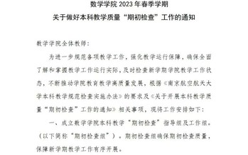为确保全面了解和掌握教学工作运行实际,及时检查新学期教学工作状态,BB贝博艾弗森官网特制定《2023年春季学期本科教学质量“期初检查”工作方案》,设立领导指导组以及由各系、中心主任、督导组成员组成工作组开展“期初”检查工作,进一步规范教学管理,精益求精谋发展,确保本学期教学任务高质量完成。