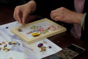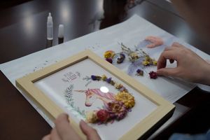 学院专门邀请了花艺师向大家教授永生花相框制作技巧。花艺师给大家介绍花材的名称和摆件的制作技巧,老师们用小镊子将花材沾上胶水,层层粘贴在背景板上,女老师们一边请教,一边相互切磋,每个人精心的完成着自己的相框作品,现场充满了欢声笑语。一会儿功夫,一个个色彩鲜艳、造型各异的相框作品展现在大家面前,大家互相欣赏,交流体会,体验亲自创作的乐趣,也享受着相框制作带来的快乐。花艺培训在温馨、快乐的氛围中圆满结束,这次活动让女教职工在繁忙工作之余享受难得的午间快乐时光,愉悦了身心、舒缓了压力。