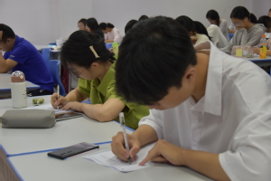 下午三点,高考英语考试开始的同时,同学们也迎来了属于自己的特殊考试。同学们领取答题卡入座,几道高中综合测试题把同学们带入熟悉的场景。当自己高中母校的照片,自己曾经的高中回忆以视频形式出现在屏幕上时,同学们的思绪纷纷回到了曾经的那段拼搏岁月。