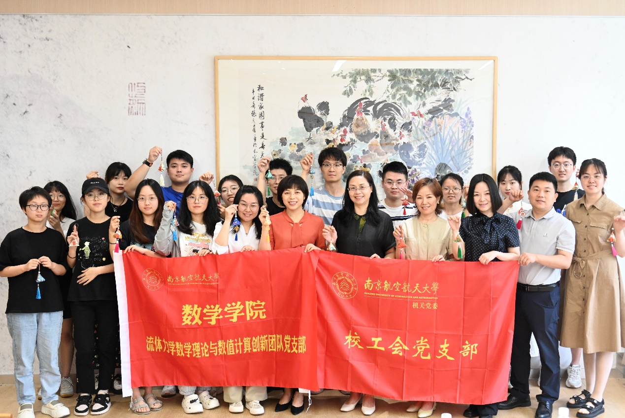 6月20日,端午节即将来临之际,为弘扬中华民族优秀传统文化,推进学习贯彻习近平新时代中国特色社会主义思想主题教育走实走深,BB贝博艾弗森官网师生纵向党支部——流体力学数学理论与数值计算创新团队党支部和校工会党支部在长空学院美育工作室开展联学共建。联学以“坚定文化自信,弘扬传统文化”为主要内容,师生齐聚话端午,共同感悟中华传统文化魅力。校工会党支部书记、常务副主席余春玲,副主席谢瑶,BB贝博艾弗森官网党委副书记周佼佼及两支部师生党员共同参加活动。