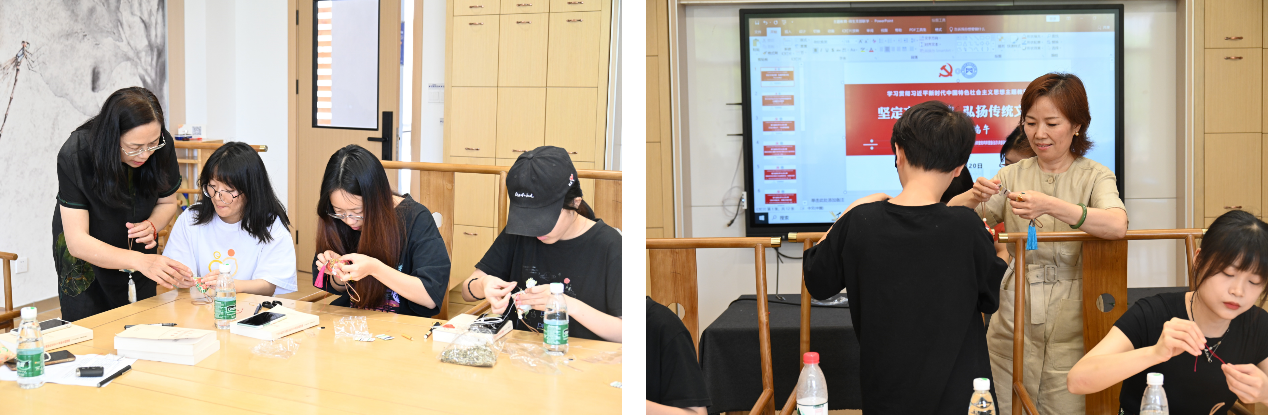制作香囊是端午节的传统习俗,在BB贝博艾弗森官网流体力学数学理论与数值计算创新团队党支部副书记赵子云的带领下,两支部党员一同手工制作香囊,在一针一线缝制中体悟端午的文化内涵和师生情谊。周佼佼表示,传统节日是文化传承的重要载体,希望同学们用心体悟节日中的民族精神、民族情感,增强民族文化自豪感和自信心,自觉担负文化建设使命。