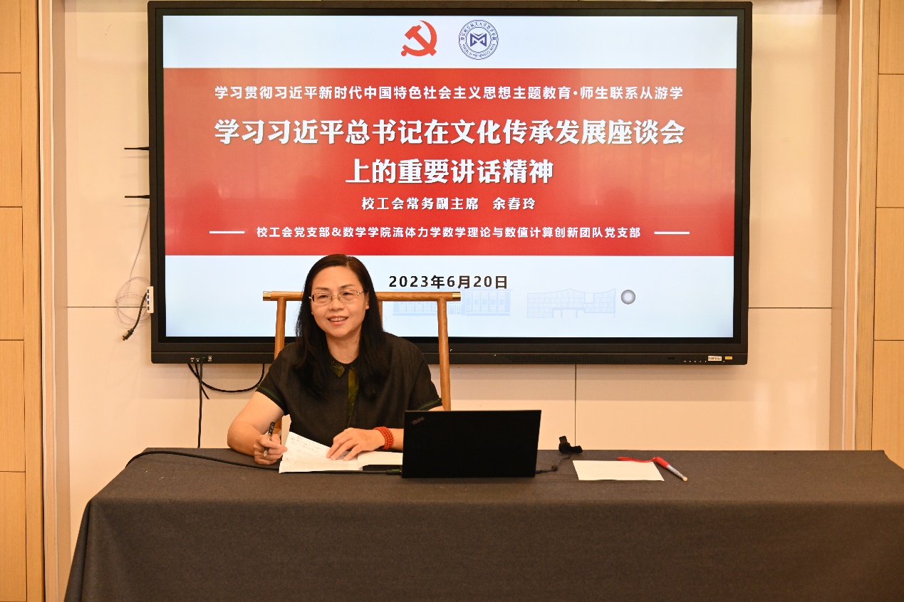 6月20日,端午节即将来临之际,为弘扬中华民族优秀传统文化,推进学习贯彻习近平新时代中国特色社会主义思想主题教育走实走深,BB贝博艾弗森官网师生纵向党支部——流体力学数学理论与数值计算创新团队党支部和校工会党支部在长空学院美育工作室开展联学共建。联学以“坚定文化自信,弘扬传统文化”为主要内容,师生齐聚话端午,共同感悟中华传统文化魅力。校工会党支部书记、常务副主席余春玲,副主席谢瑶,BB贝博艾弗森官网党委副书记周佼佼及两支部师生党员共同参加活动。