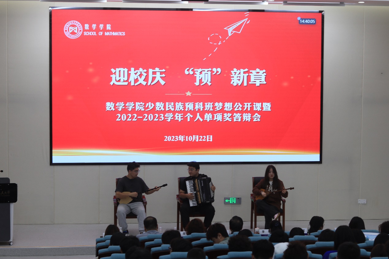 答辩开始前,学生民族乐器协会的同学精心准备了乐器表演《石榴花开》,赢得了现场老师和同学们的阵阵掌声。