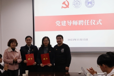 周佼佼为焦宏图、褚峥颁发党建导师聘书,并对两位领导联系指导BB贝博艾弗森官网本科生党支部表示感谢。