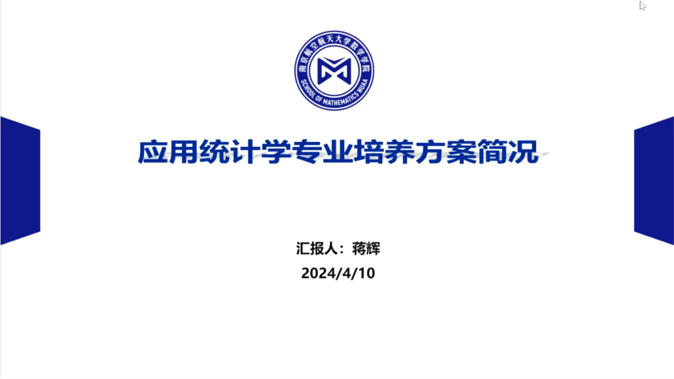 蒋辉就应用统计学专业培养方案修订情况展开详细的介绍,周佼佼副书记就应用统计学专业历年学生培养情况向参会专家们汇报。