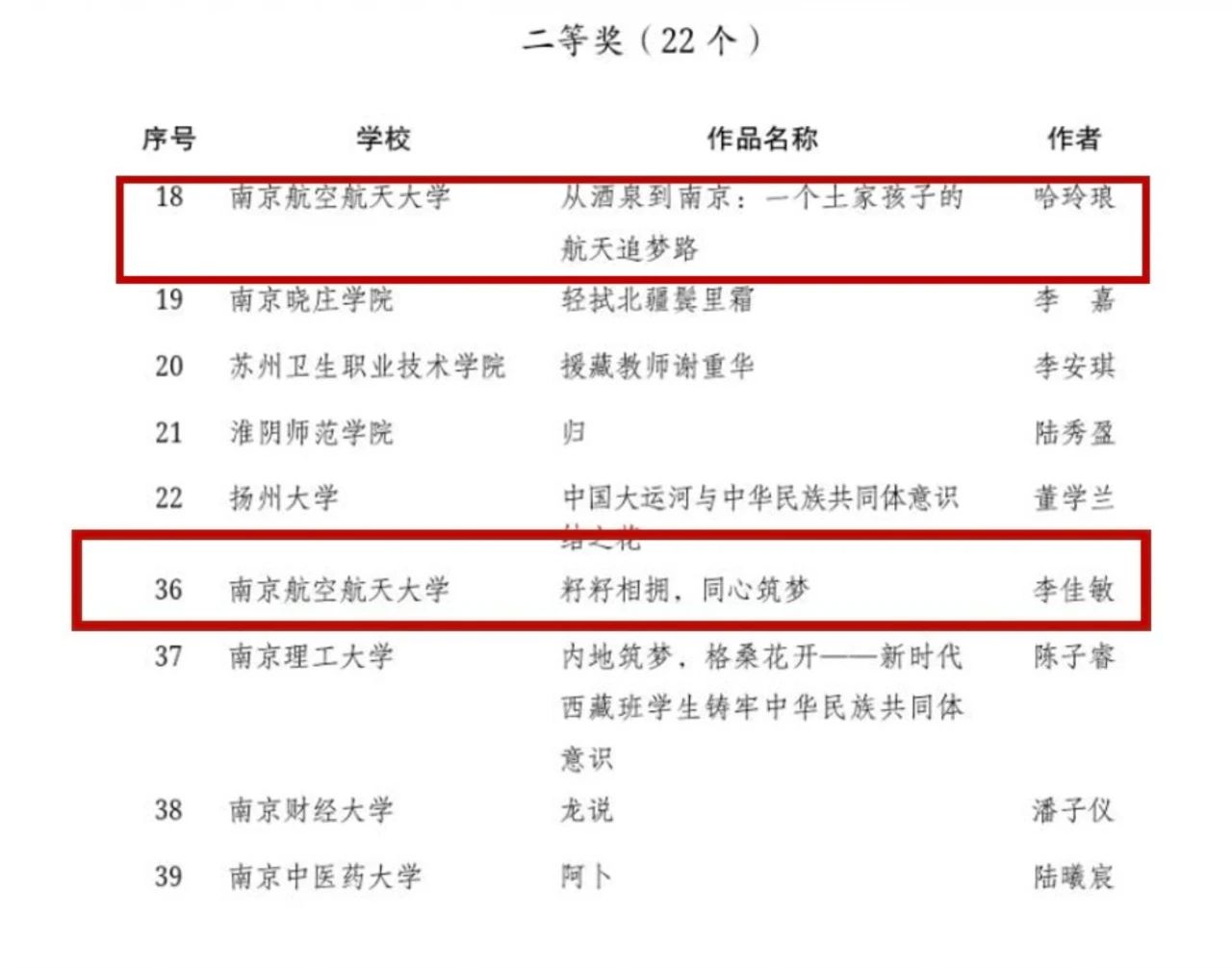 日前,由江苏省民族宗教事务委员会、中共江苏省委宣传部、中共江苏省委统一战线工作部、江苏省教育厅共同主办的江苏省第一届“铸牢中华民族共同体意识·高校在行动”系列活动获奖名单公布,南航学子获得优秀成绩。其中,贝博学子投稿的《从酒泉到南京:一个土族孩子的航天追梦路》、《籽籽相拥,同心筑梦》均获征文比赛(普通类)二等奖,为我校在该序列的最高获奖等次。该系列活动征文中,全省共有98所高校推荐474篇稿件参评,普通类征文共评定二等奖22篇。