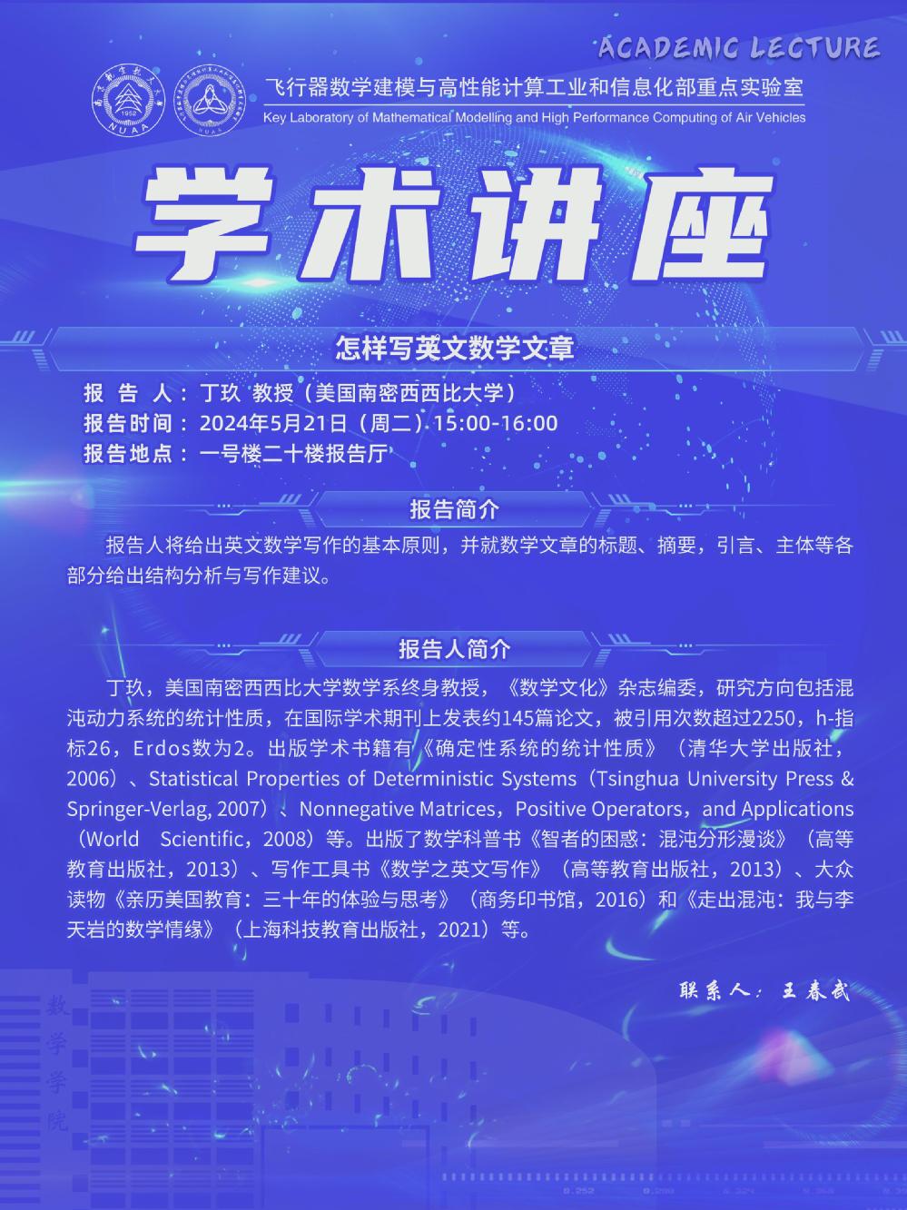 【学术讲座5.21 丁玖 美国南密西西比大学】