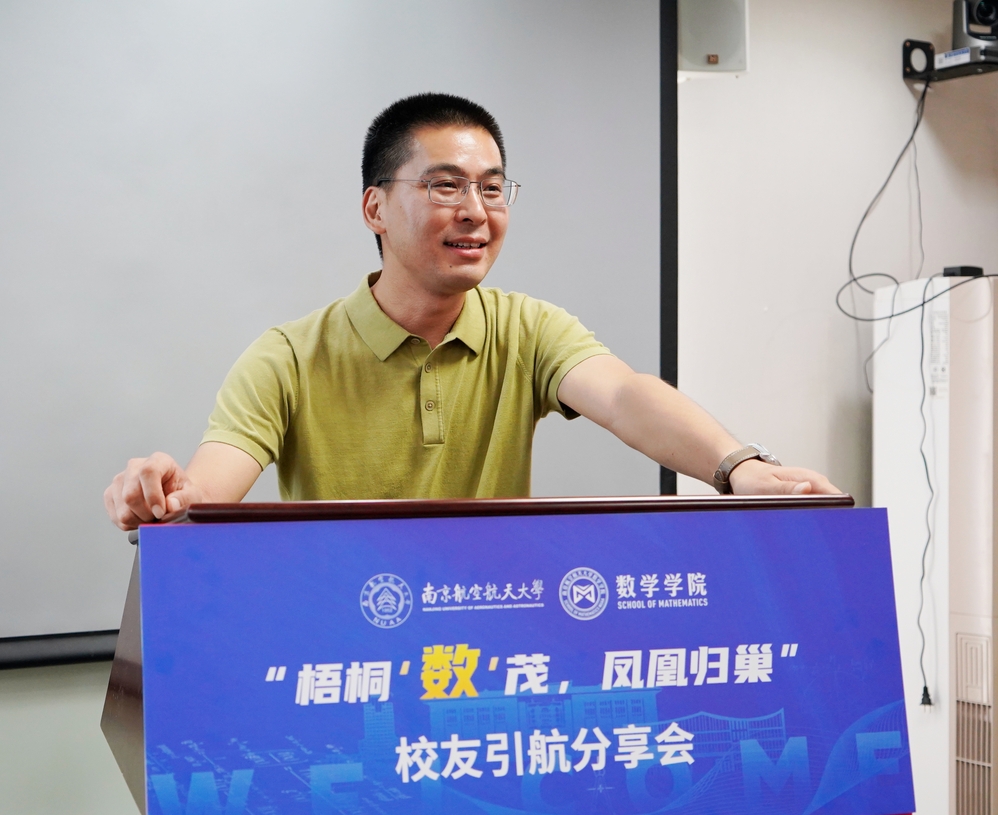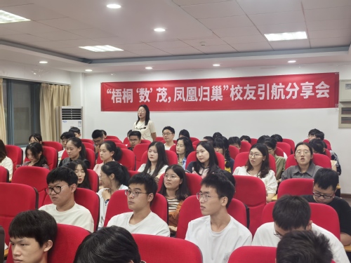 9月11日下午,BB贝博艾弗森官网在将军路校区理学楼217报告厅举办“数熠新辉,逐梦研途”2024级研究生新生见面会暨“梧桐‘数’茂,凤凰归巢”校友引航分享会。学院党委书记许静、党委副书记王亚鹏、副院长徐江、研究生教务员鲁晓林,以及 2024 级全体研究生参加会议,航天东方红卫星有限公司国际部部长钟鹏华受邀到场。会议由学院团委书记、研究生辅导员张鹤千主持。