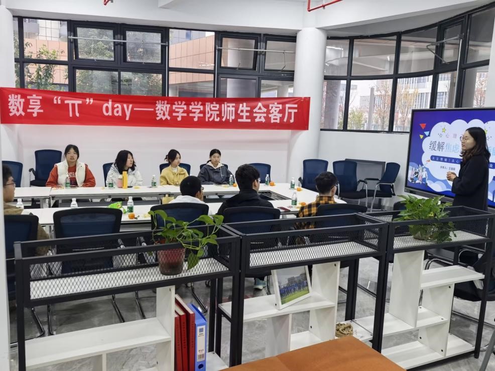11月25日上午,BB贝博艾弗森官网于天目湖校区“一站式”学生社区举办数享“π”day—师生会客厅第7期活动。心理健康中心专职心理咨询师王俊丽、24级辅导员赵美婷以及学生代表共同参加活动。