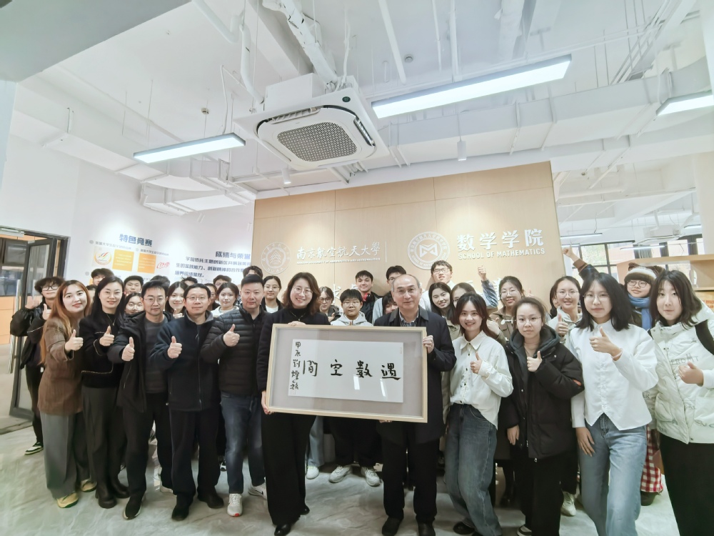 刘灿铭、许静、王亚鹏及学生代表共同为一站式学生社区揭牌。“遇数空间”四字为刘灿铭亲笔题写,不仅寄托了对数院学子们的美好祝福,更为一站式学生社区建设赋予了独特的艺术魅力和深厚的文化底蕴。