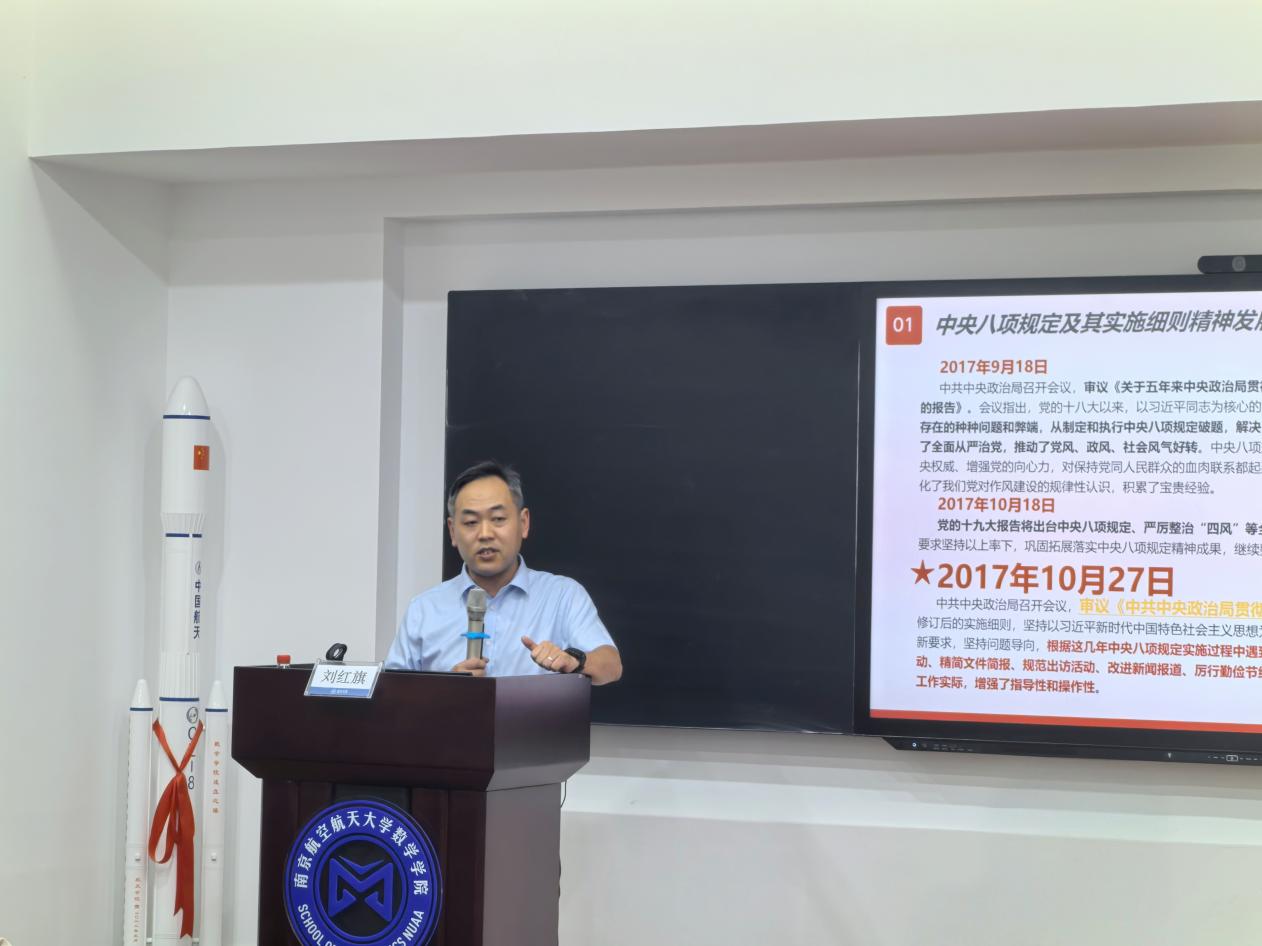 深入贯彻中央八项规定精神学习教育,持续推进全面从严治党向纵深发展,65日,数学学院开展学习教育专题辅导报告会,特邀学校审计处处长刘红旗主讲学院班子成员、院长助理,系/中心班子成员、支委,机关人员及师生党员代表40余人参加学习,报告会由学院党委书记许静主持。